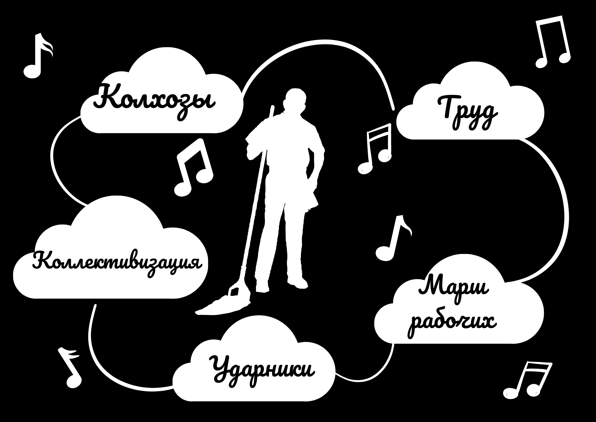 Песни периода коллективизации в основном посвящены теме труда, так как он занимал центральное место в жизни советских граждан и, более того, песни были мобилизационным рычагом со стороны государства.